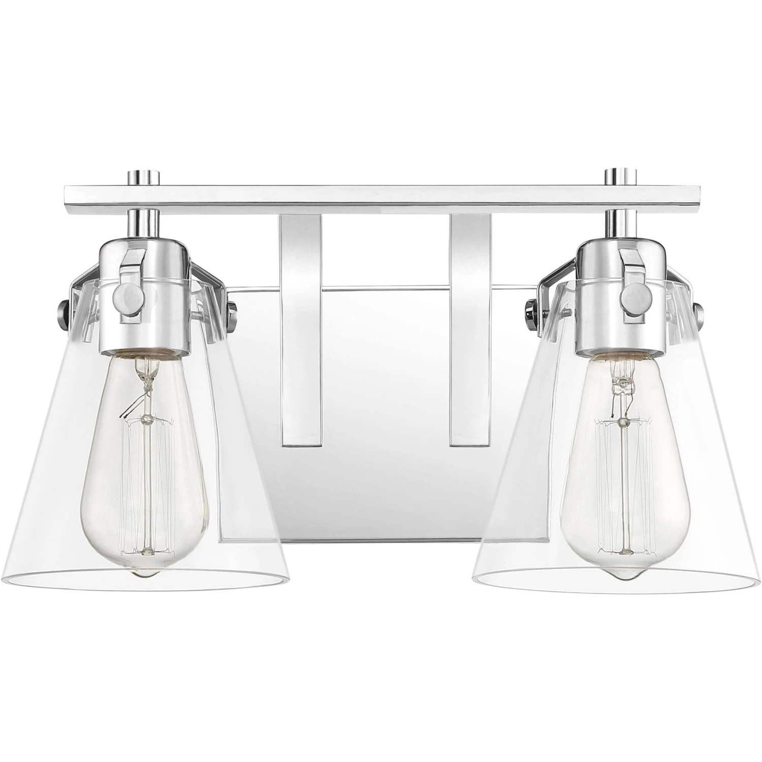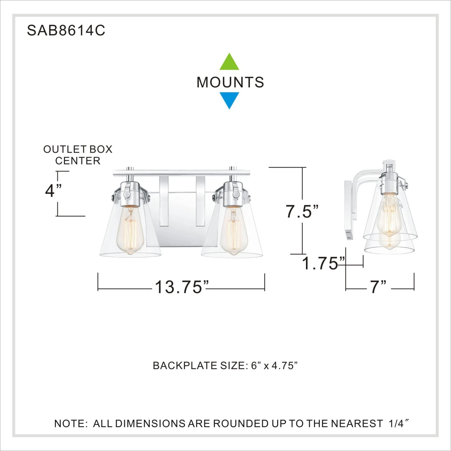 Refresh your bathroom with the clean look of the Sabine collection. This transitional style fixture comes in a Polished Chrome finish with clear glass shades that will suit a variety of bathroom decors. All Sabine bath fixtures can bemounted as uplights or downlights.