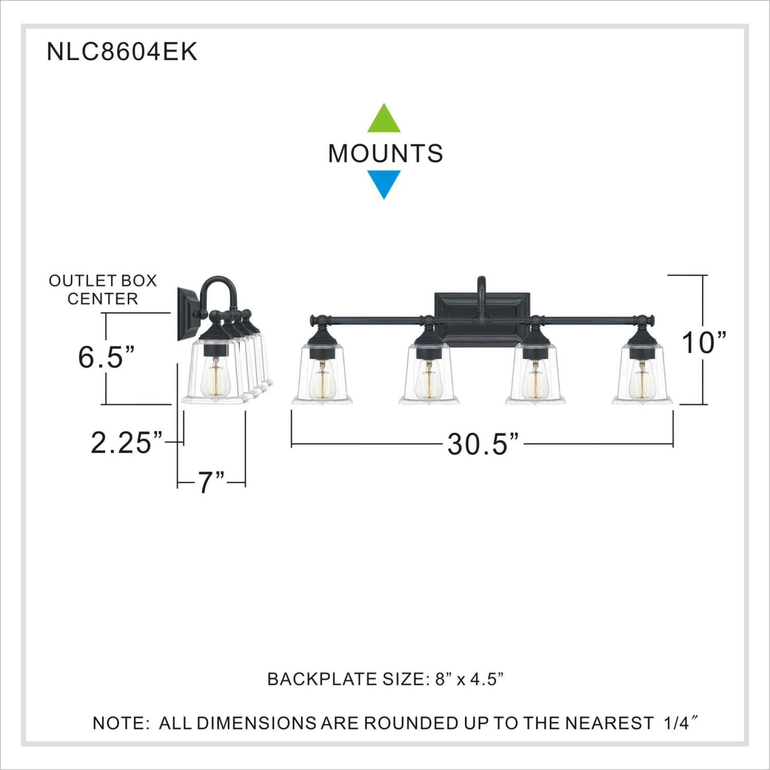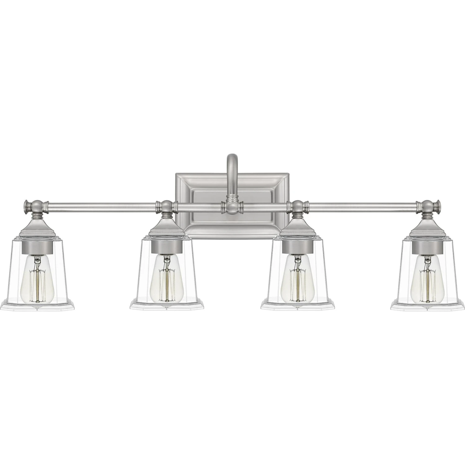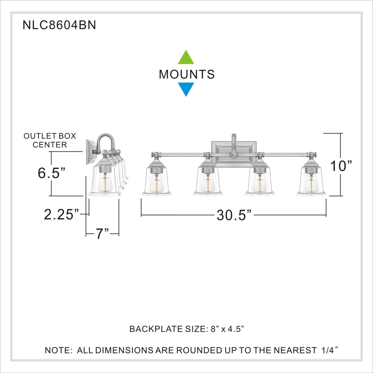 The Nicholas collection gives a solid nod to mid century style. The streamlined silhouette is finished in Brushed Nickel, Polished Chrome, or Earth Black to compliment a variety of home styles. The squared shape of the clear glass shades gives this design an edge and it is complemented beautifully by the rectangular backplate. All bath fixtures can be mounted as uplights or downlights and are offered in several sizes.
