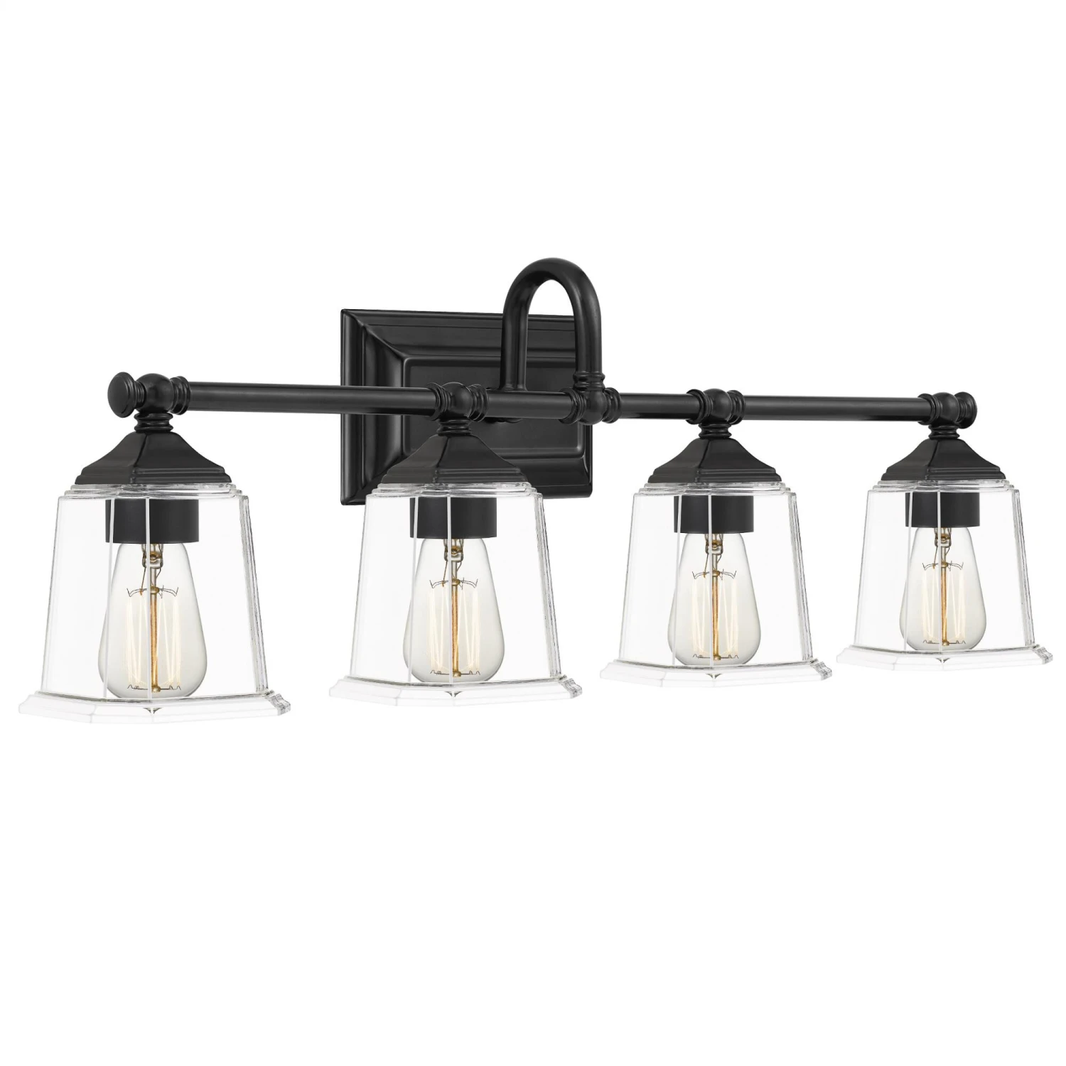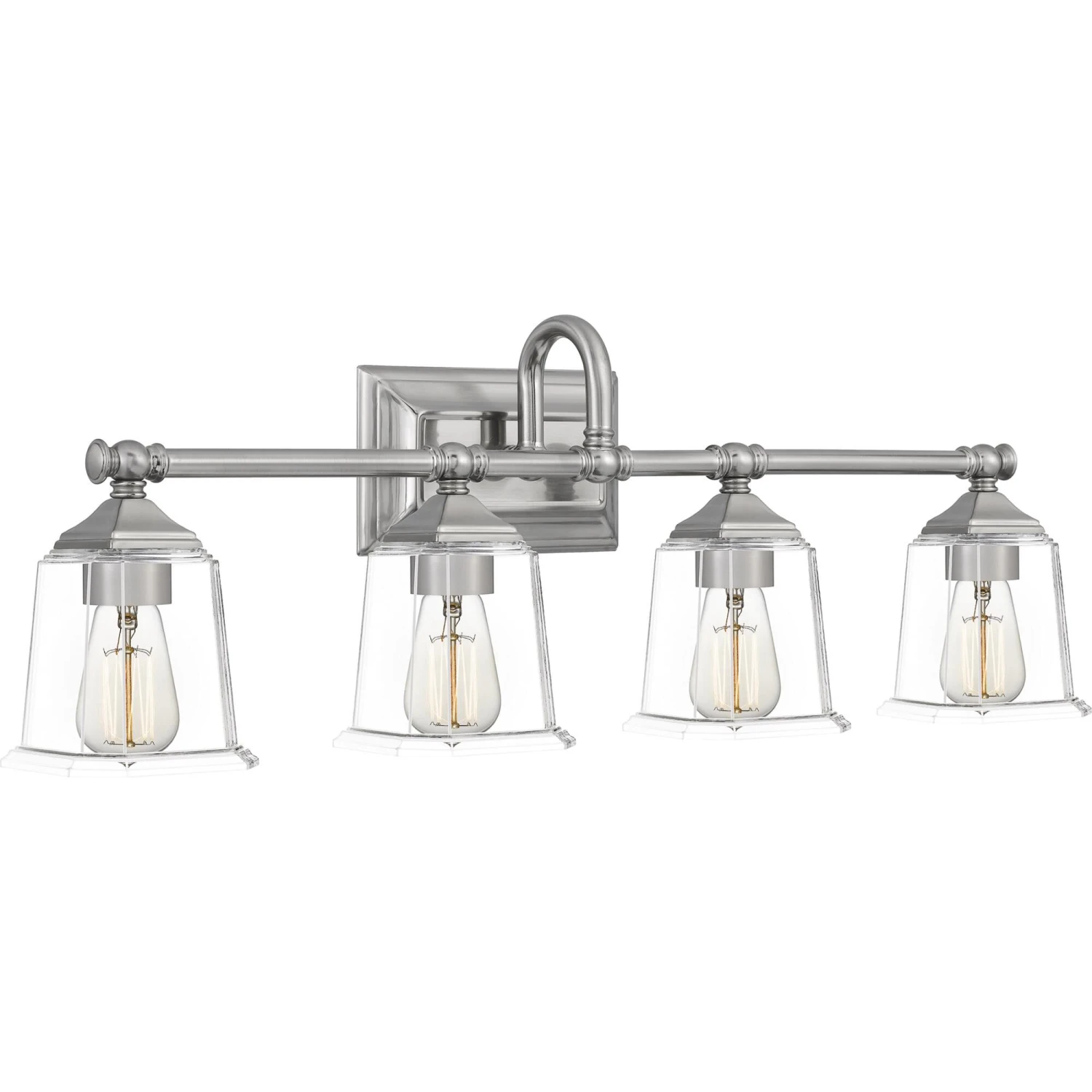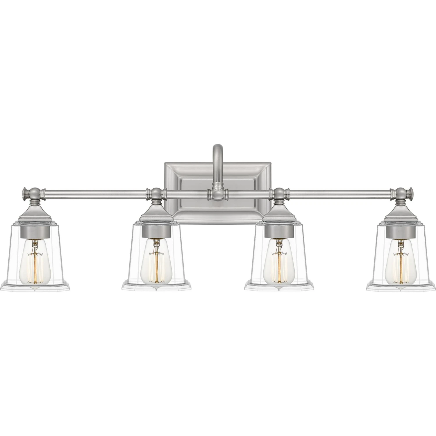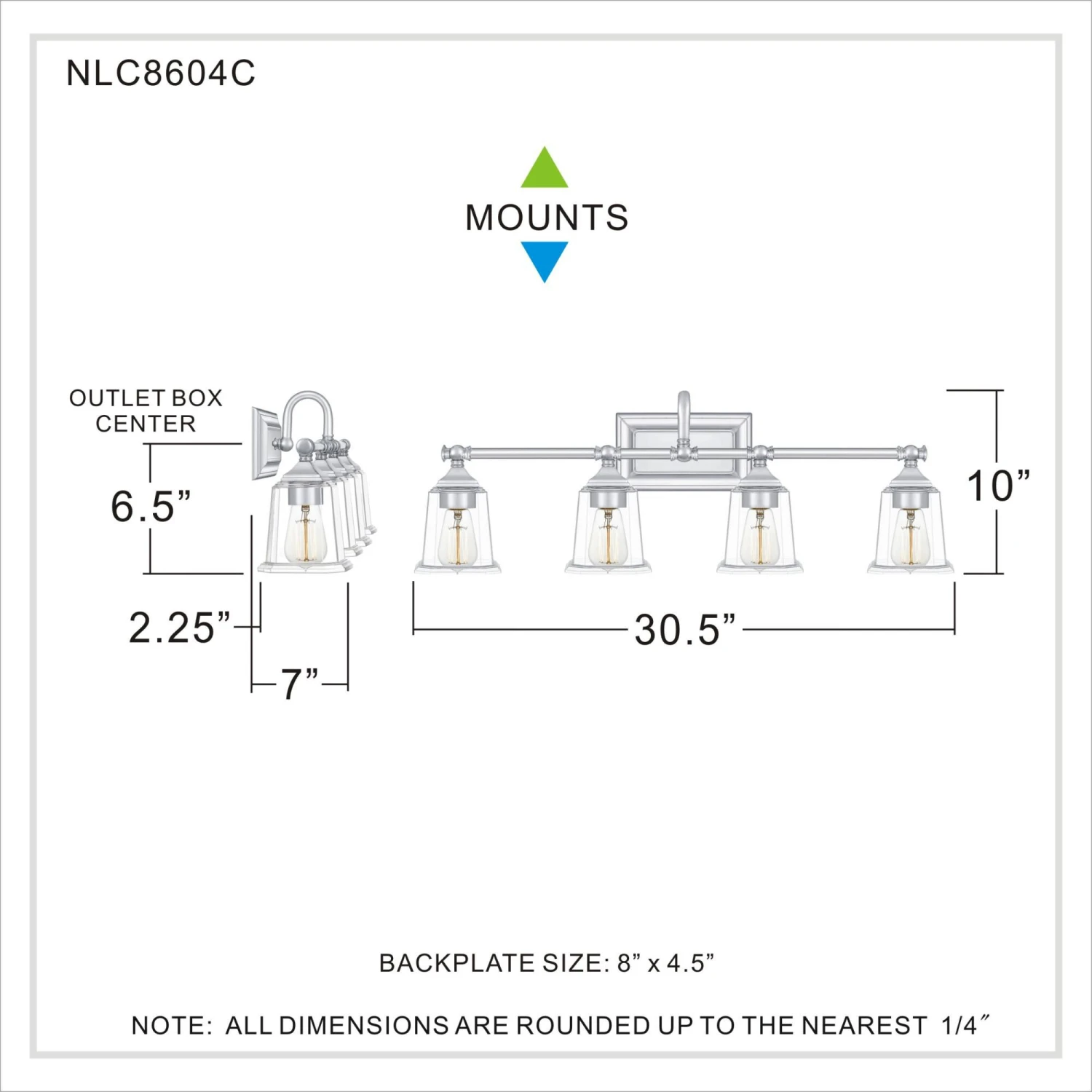 The Nicholas collection gives a solid nod to mid century style. The streamlined silhouette is finished in Brushed Nickel, Polished Chrome, or Earth Black to compliment a variety of home styles. The squared shape of the clear glass shades gives this design an edge and it is complemented beautifully by the rectangular backplate. All bath fixtures can be mounted as uplights or downlights and are offered in several sizes.