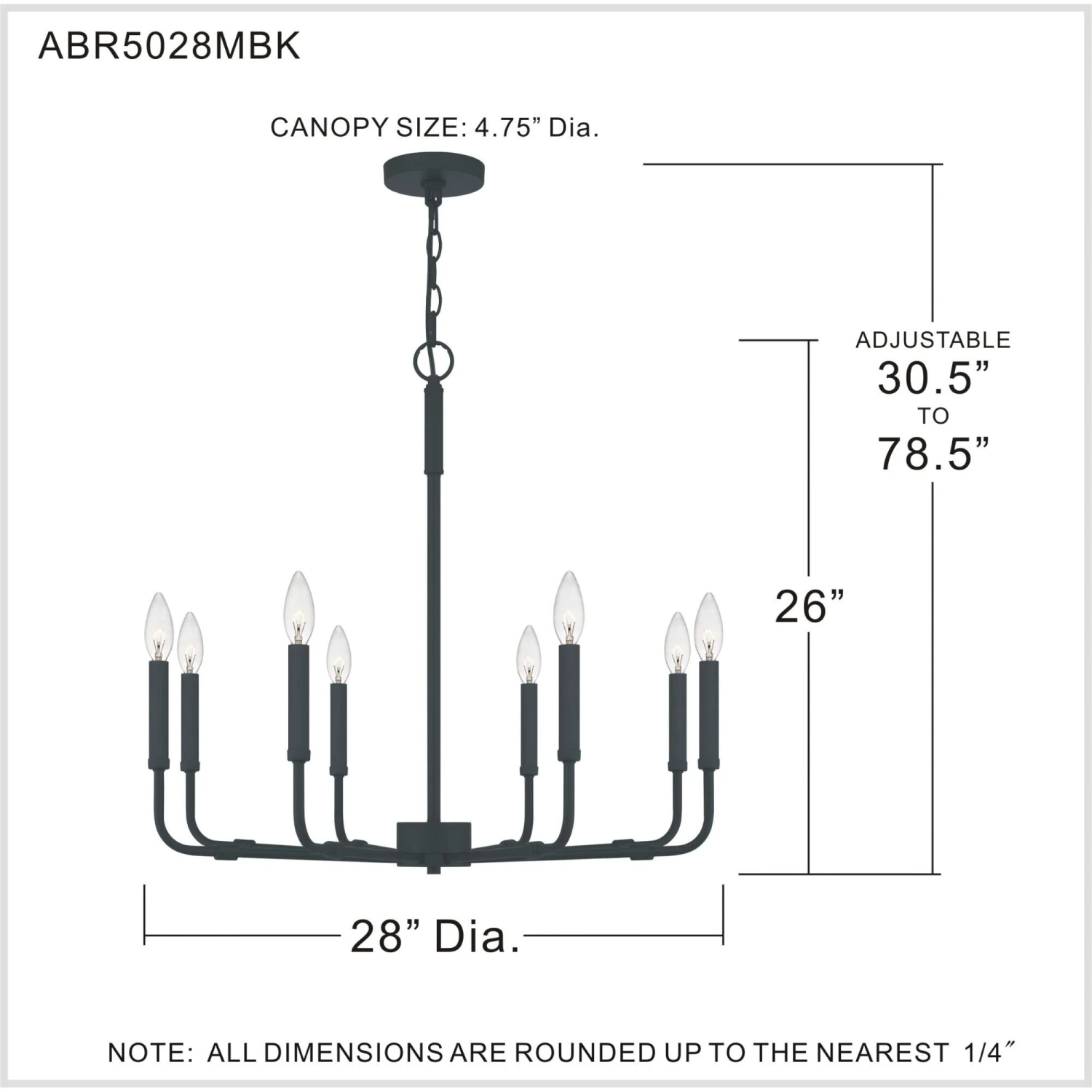 - – Incandescent: 8 Light – Candelabra Base E12 B10 60 Watt