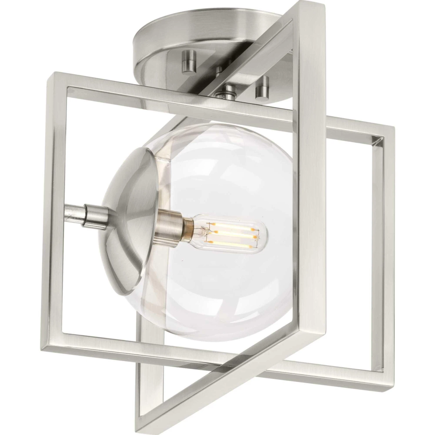 Extraordinary on the first impression, but always at peace with whatever setting it calls home, this pendant is a statement-making lighting design. The light fixture features an intricate blend of circular and a one-of-a-kind architectural designs that is both remarkable and enduring. A clear globe shade softens and contrasts with the frame’s sharp corners.