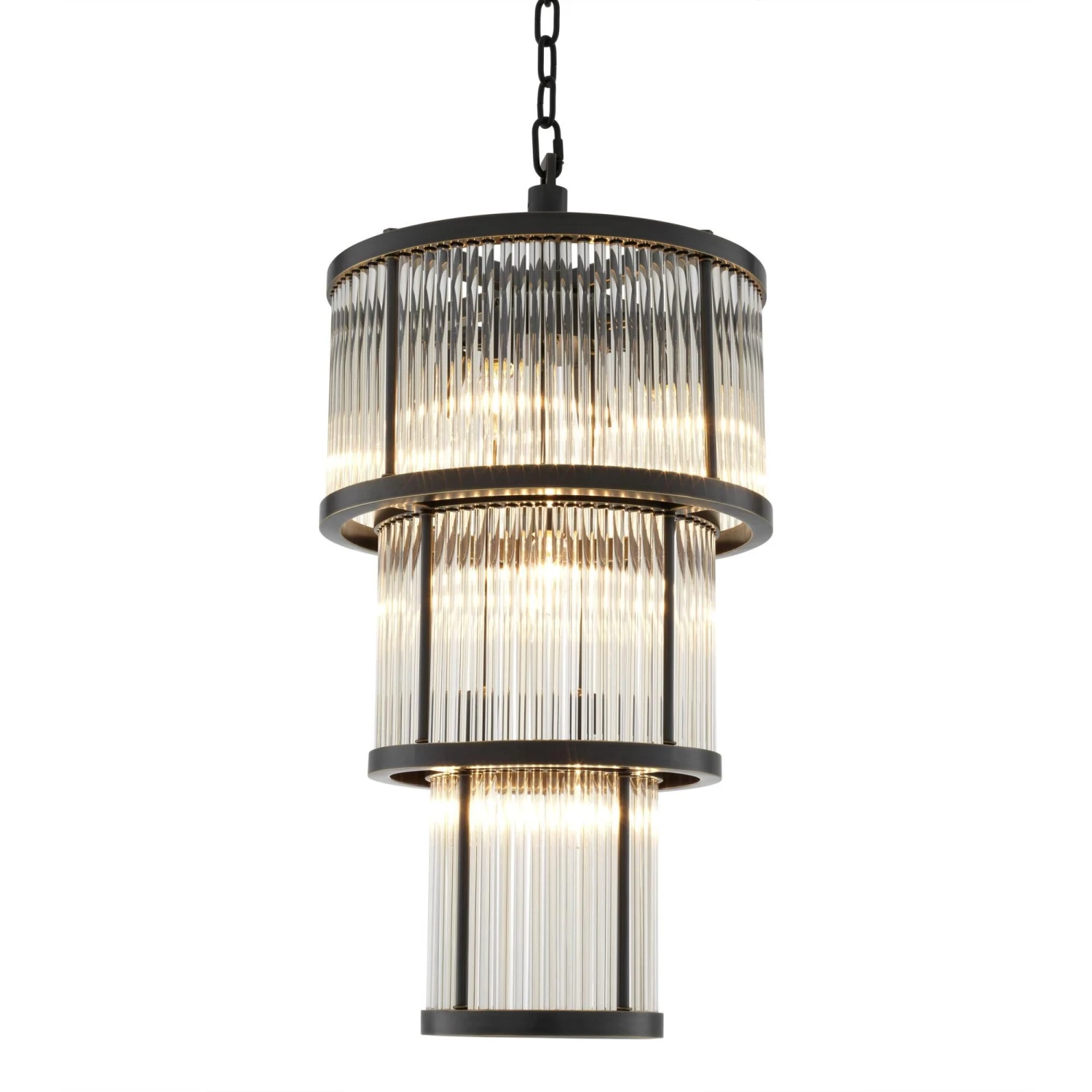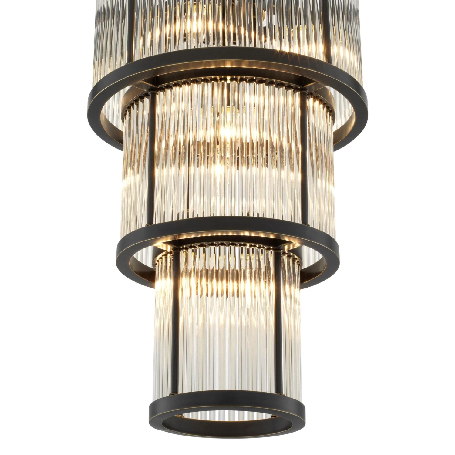 Set the mood for mellow moments with the Art Deco inspired Avery Chandelier. By pairing classic design with contemporary aesthetic, this refined chandelier exudes timeless appeal. The drum shades with bronze highlight finish feature vintage glass rods for a soft and warm glow.