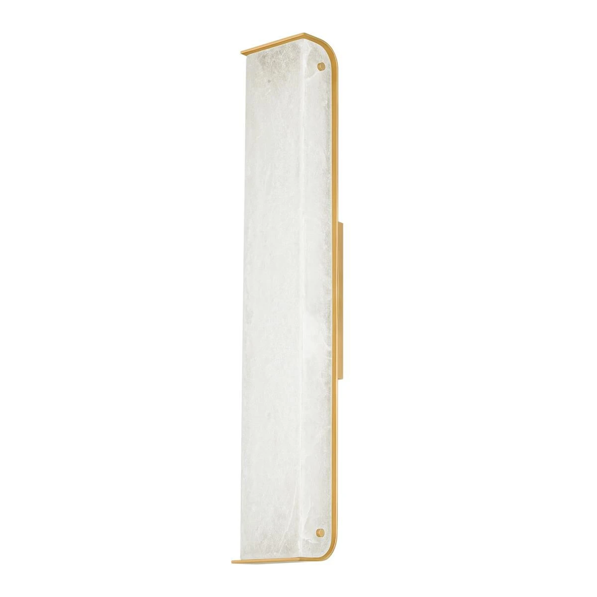 Inspired by the grandeur Greek architecture, this statuesque wall sconce features a thick alabaster stone slab ensconced within a Vintage Brass frame. With its natural veining and translucency, the ivory alabaster reveals its color and texture when lit. Available in two sizes, Hera presents a striking visual display in a hallway or bathroom. Due to the one-of-a-kind nature of the medium, exact colors and patterns may vary slightly from the image shown.