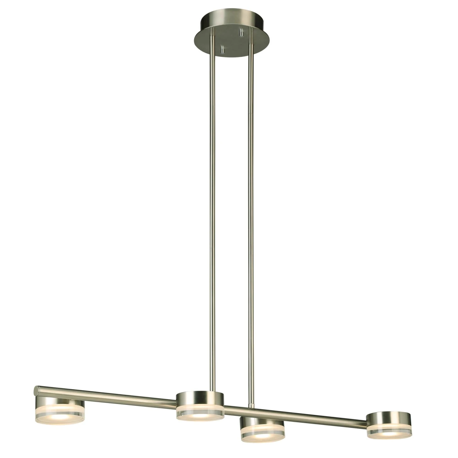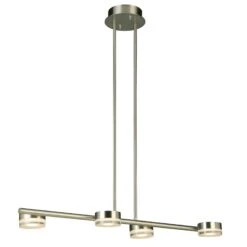 TheTranston 4 Light Pendantby Eglo exudes contemporary flair from its Brushed Nickel mount. 4 -18 watt Integrated LED lights cast warm-toned light from inside their satin acrylic shade covers. With the rotating arms the light can be directed in position that best fits your needs. The Transton Pendant is a perfect pairing with a clean, modernist aesthetic. Also height adjustable