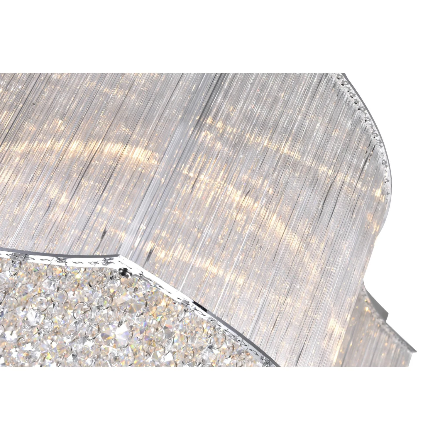 Rising to the top of elegance is the Elsa 12 Light Flush Mount chandelier. This light fixture is designed with a shapely drum shade made of glass and paired with clear crystal bead strands. The chrome-finished metal rims of the shade complete the stunningly luxe look of this luminaire. Easily achieve the “wow” factor in a low-ceiling space with this flush mount lighting.