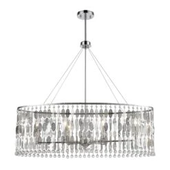 The Fantania collection showcases modern elegance with a crystal laced pendant terminating in a “funnel” of falling crystals.