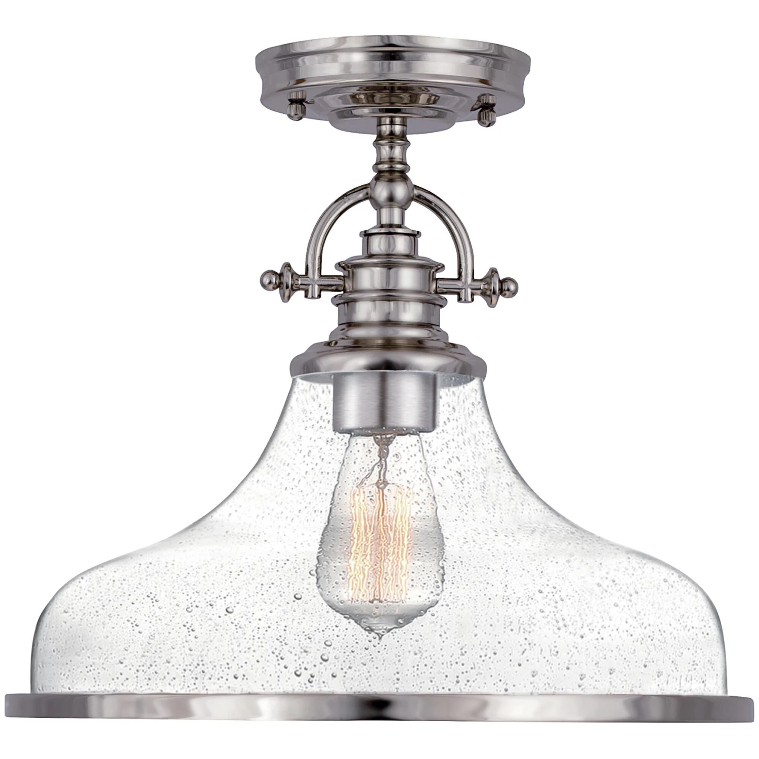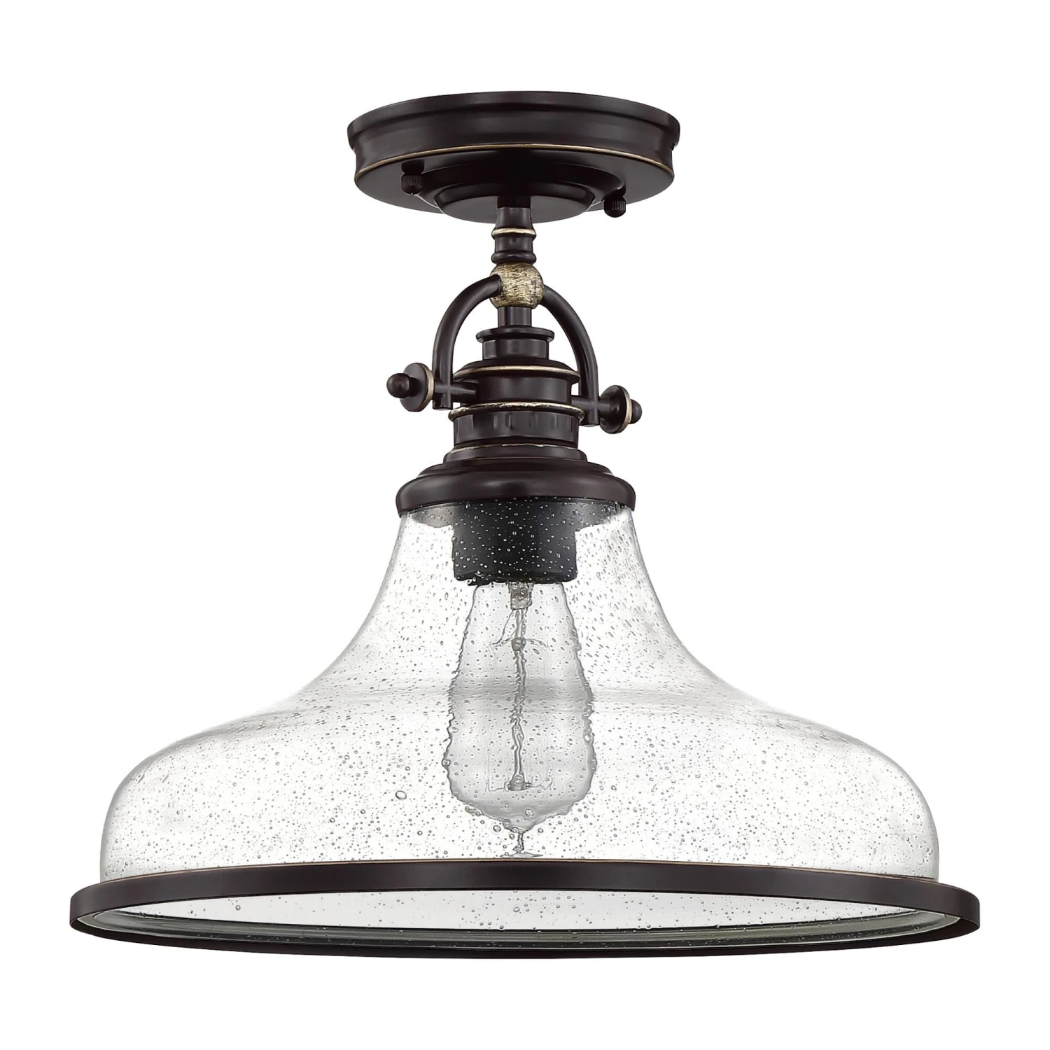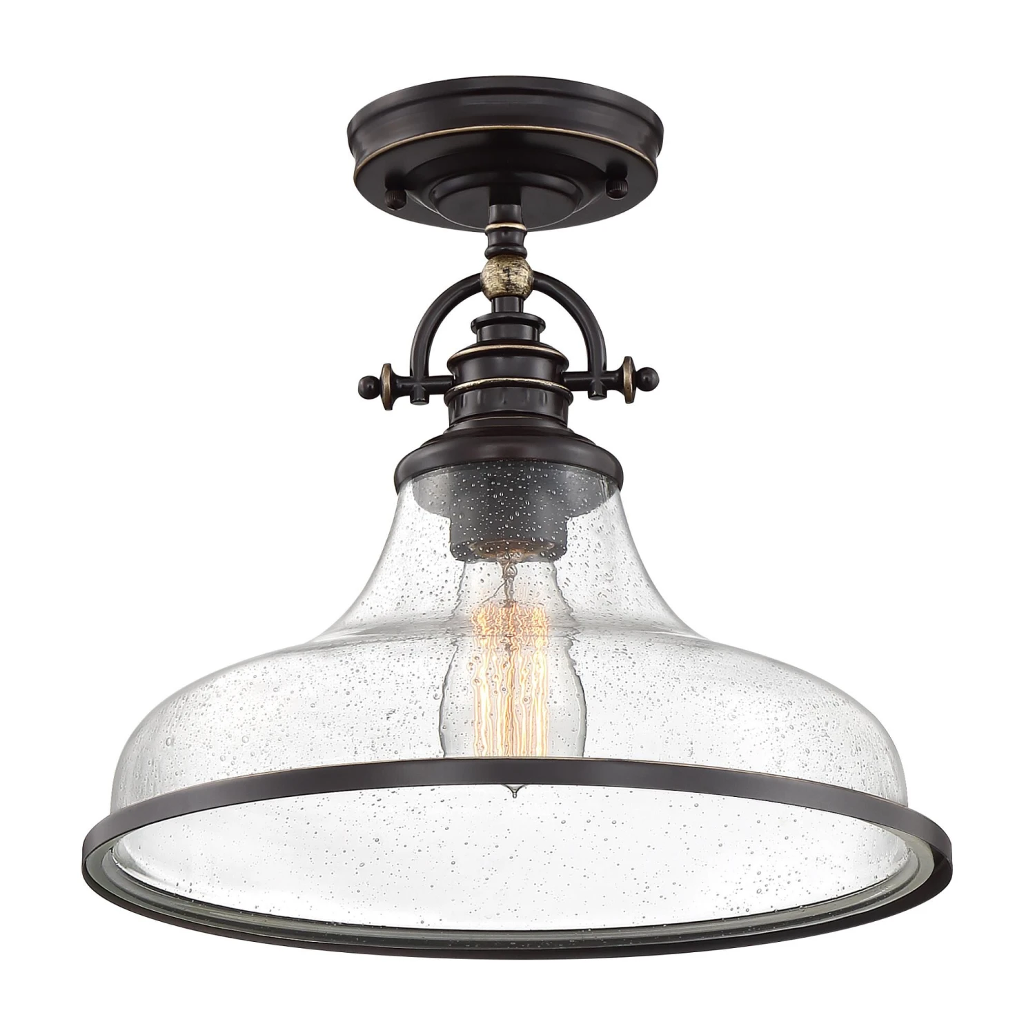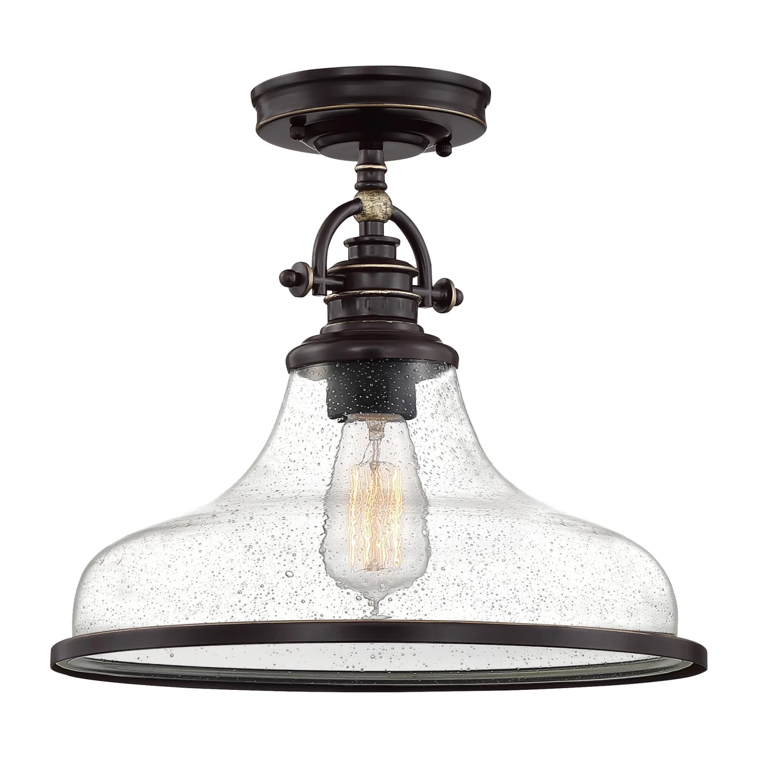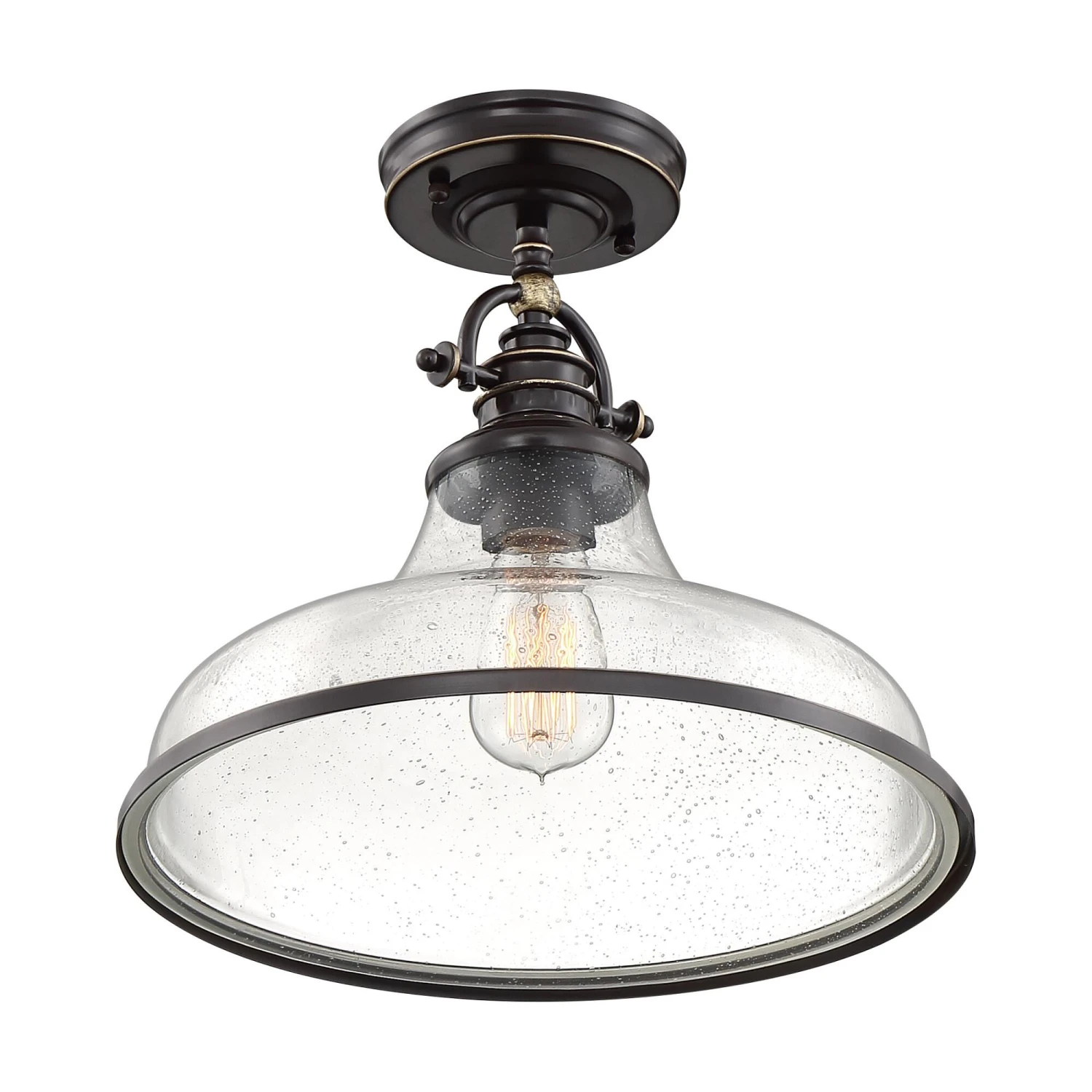 Enhance your home’s decor with the Grant collection. This seedy glass fixture is an updated nod to the past. Finished in Palladian Bronze, the classic Americana styling adds a nostalgic flair to your home.