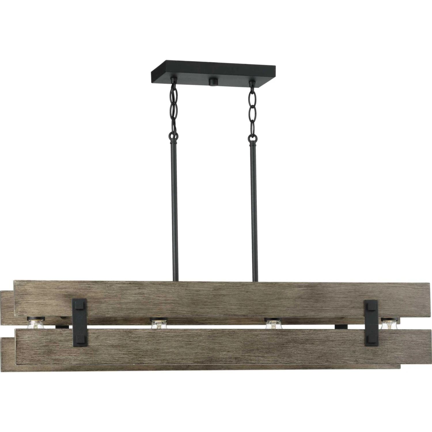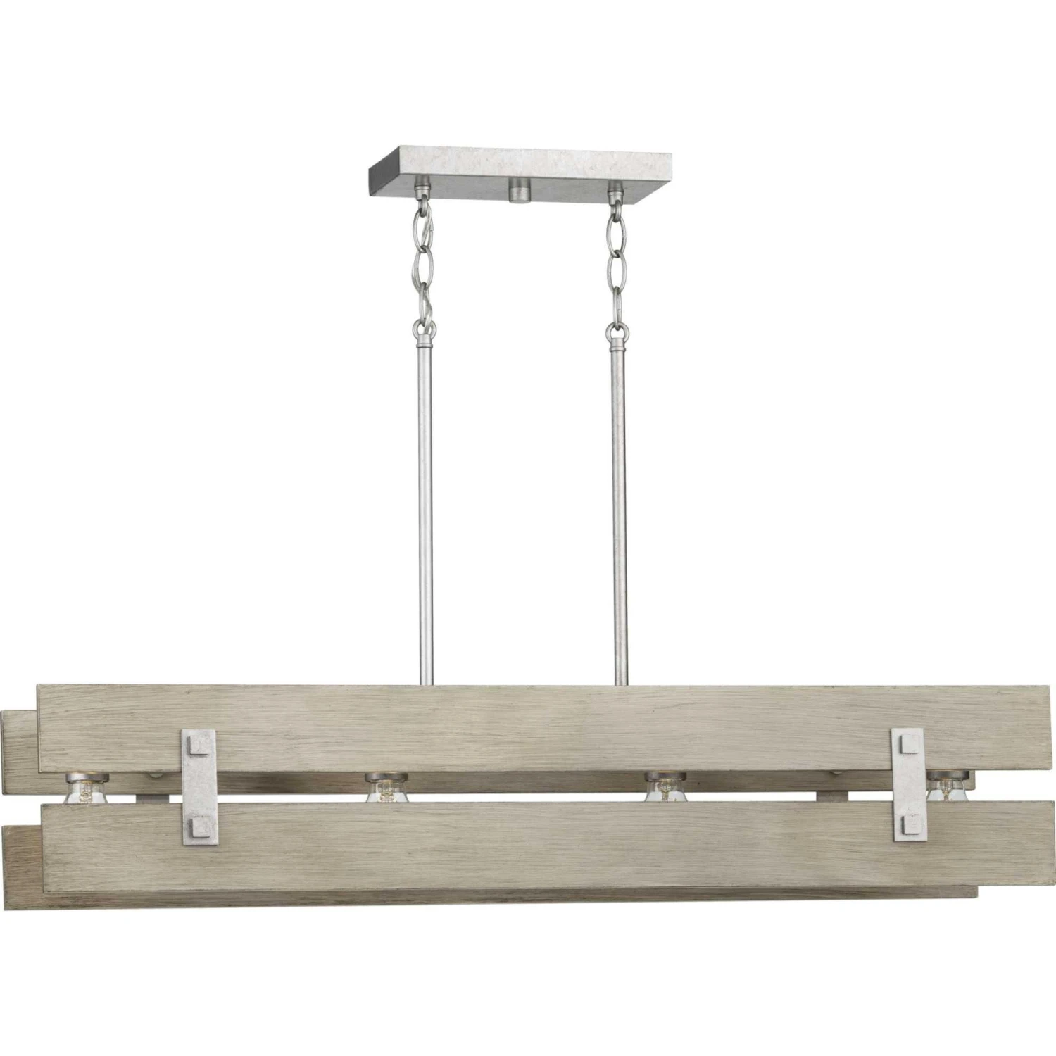Create an extension of your personality and lifestyle with the rustic charm of this island light. Country character is the cornerstone of this light fixture that features a crate-like frame composed of bleached oak. Galvanized barn-inspired metal details complete this must-have farmhouse design.