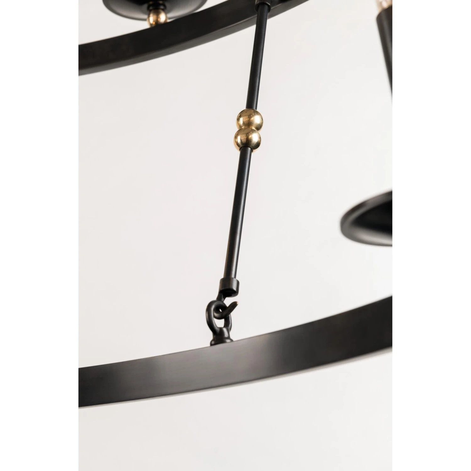Streamlining a wagon-wheel chandelier with hook-and-hoop rods, Allendale breathes new life into a classic. Available in one-to-three-tier and rectangle versions, its sphere details and vastly different finishes refine the rustic.