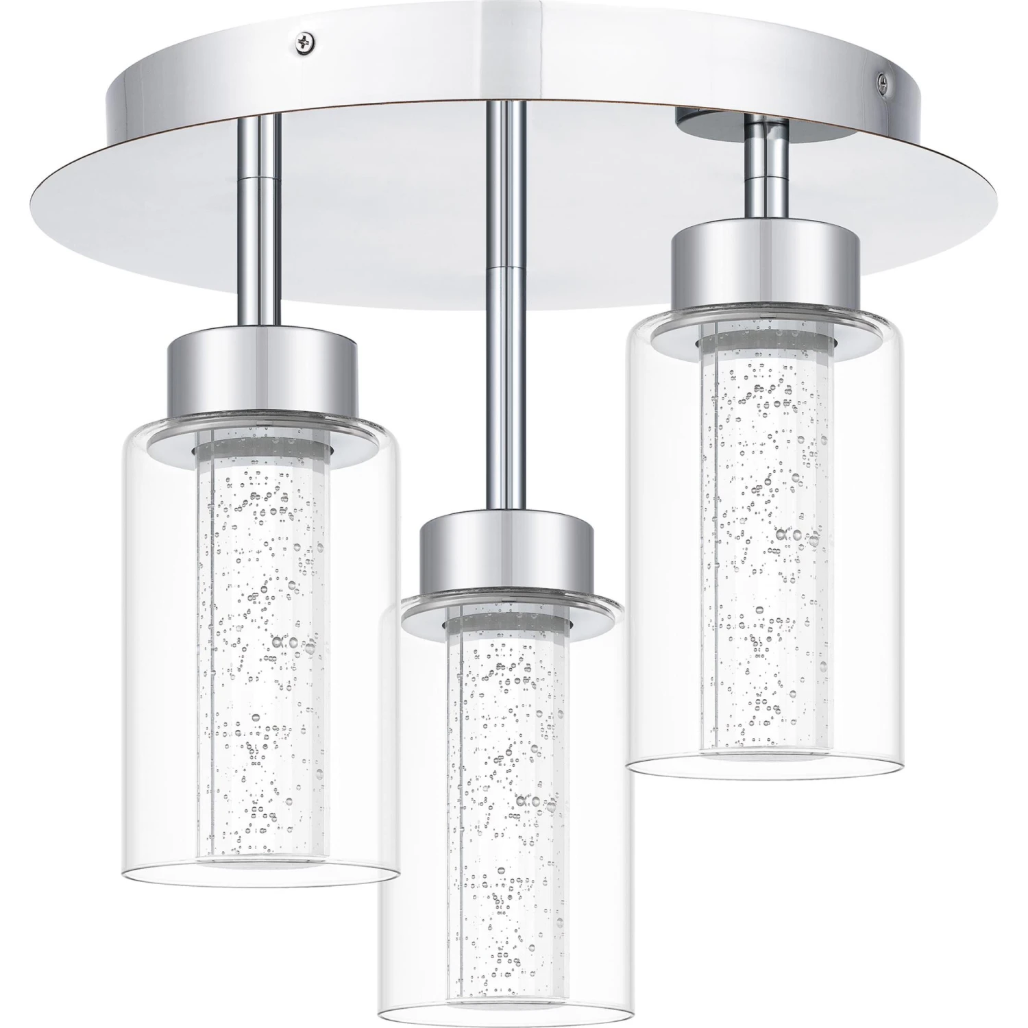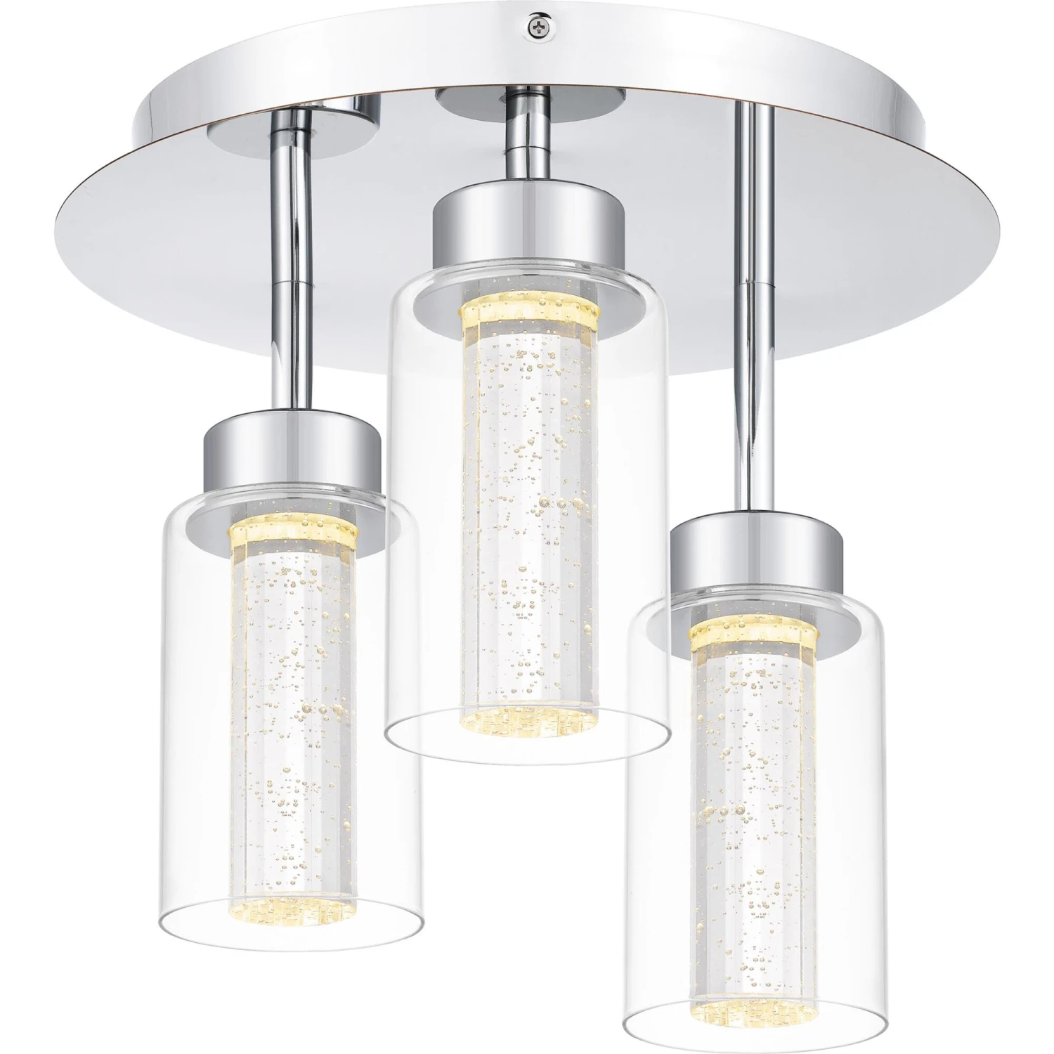 The Jade flush mount evokes the nostalgia of a lava lamp imbued with sophistication. Three integrated light sources feature mesmerizing micro-bubbles that reflect and refract illumination. A polished chrome finish enhances sleek shine.