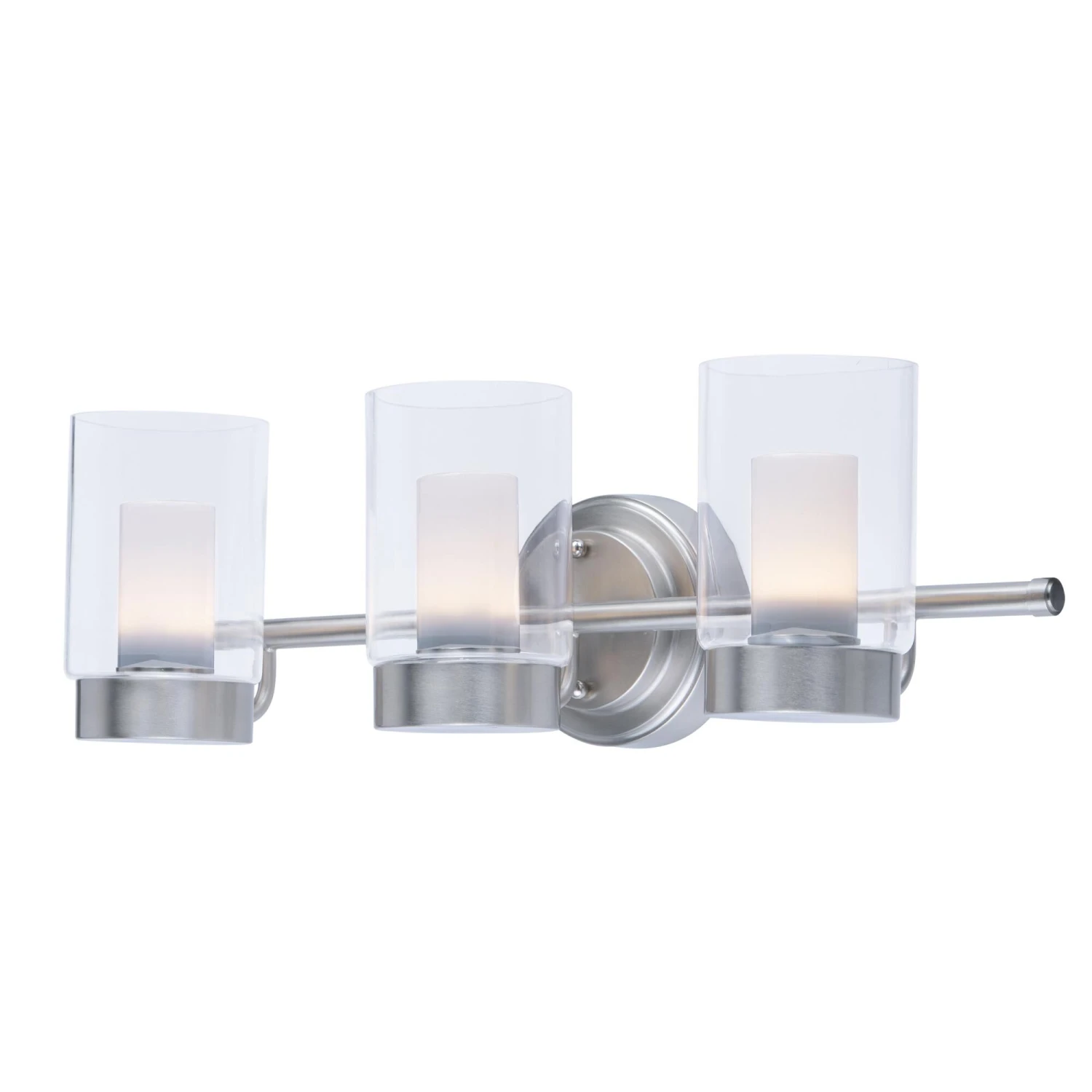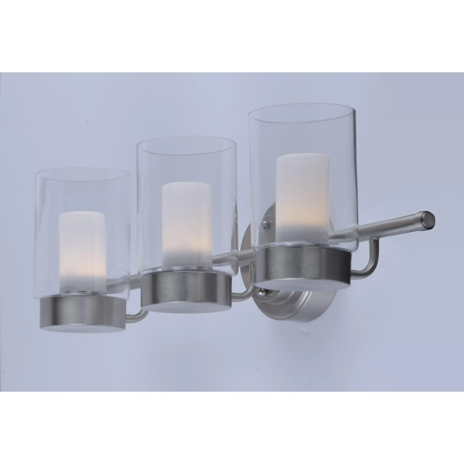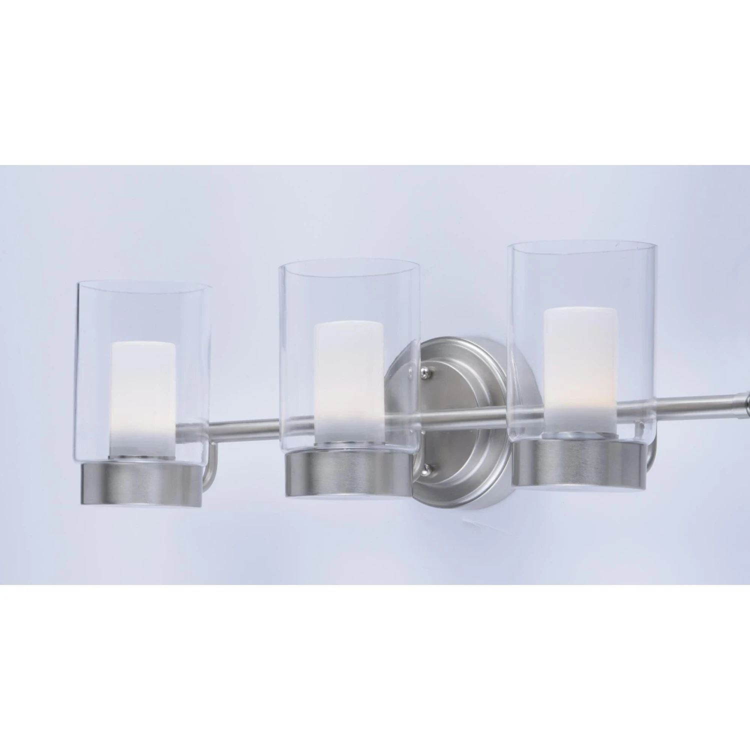 A contemporary design featuring a Satin Nickel frame supporting Clear cylinder glass shades with Frost interior diffusers all powered with energy efficient LED technology. Finally LED technology at an affordable price.