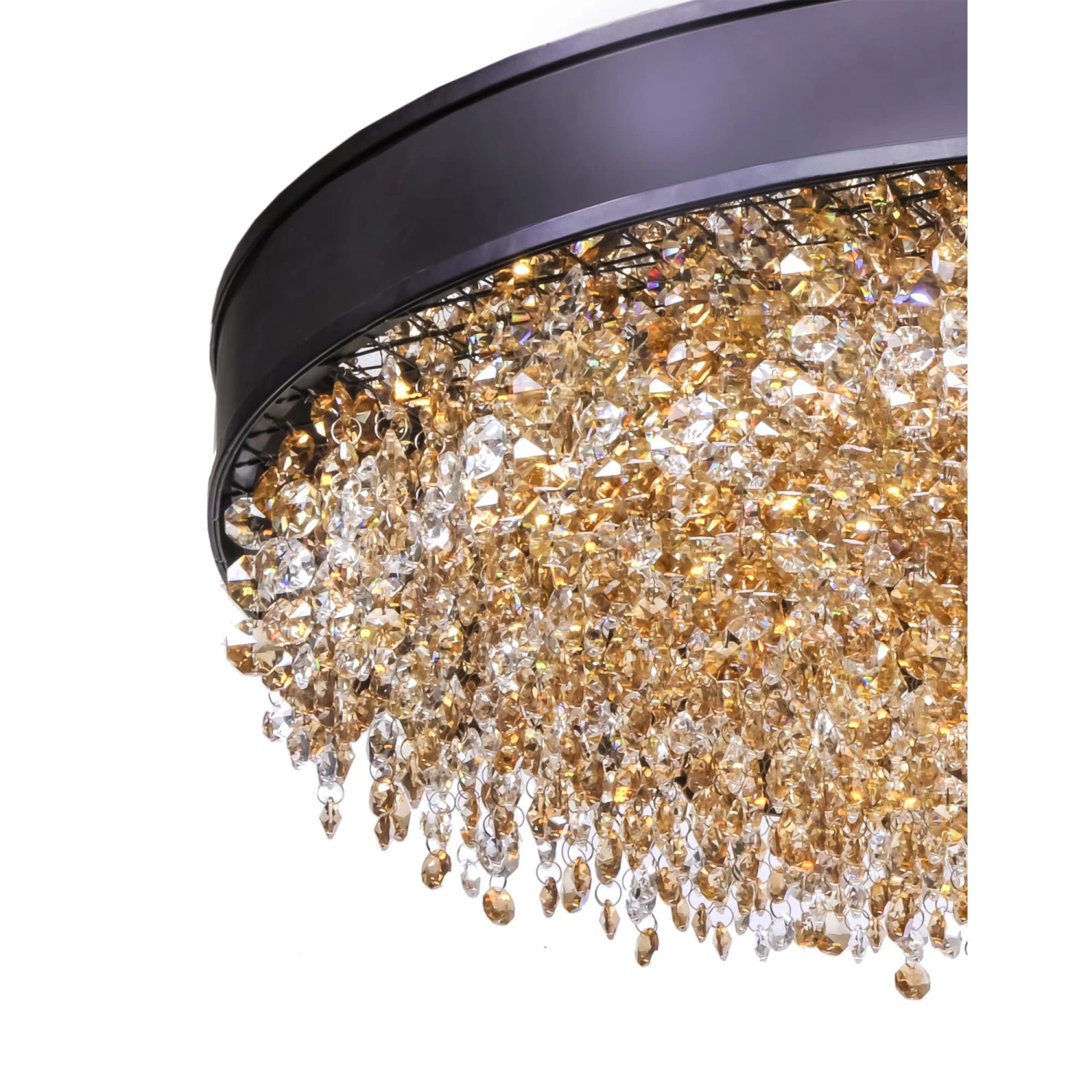 A sea of crystal strands suspend from within drums of steel which are finished in your choice of Bronze with Scotch crystal or Polished Chrome with Mirror Smoke crystal. Hidden inside the drum is a powerful dimmable LED source which has the crystals dancing in the night without any glare in your eyes.