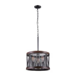This Parsh 3 Light Chandelier is the perfect lighting option to pair with your barn door and exposed wood beams. Exuding a down-to-earth feel, this drum shade chandelier in pewter casts light that is cozy and warm. The metal mesh drum shade measures 16 inches in diameter and is perfectly finished by a brown wood grain frame.