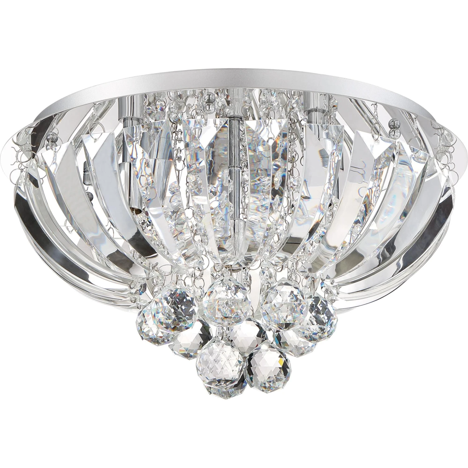 Treat your space to a dazzling display of light and glass with the Glisten flush mount, another beautiful addition to Quoizel’s Platinum collection. Slices of curvy beveled glass surround a cluster of brilliant crystal strands, which intersect in a stunning culmination of oversized glass drops. The polished chrome base mirrors the shimmer and maximizes the sparkle.