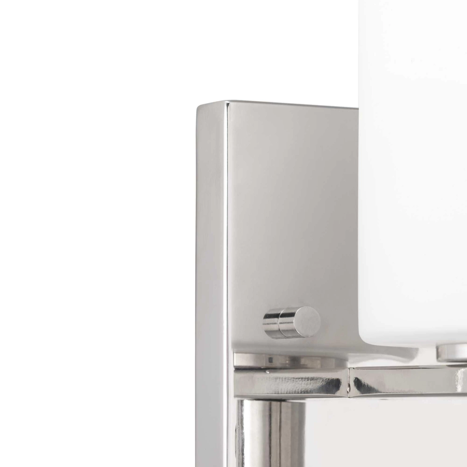 Enjoy high status with a one-light bath and vanity in the Lisbon Collection that is full of femininity, gleam and shine. Etched opal glass shade sits atop an elegant K9 glass rod, highlighted with a Polished Nickel finish. The highly polished design style complements both Modern and Luxe interiors and can be mounted up or down.