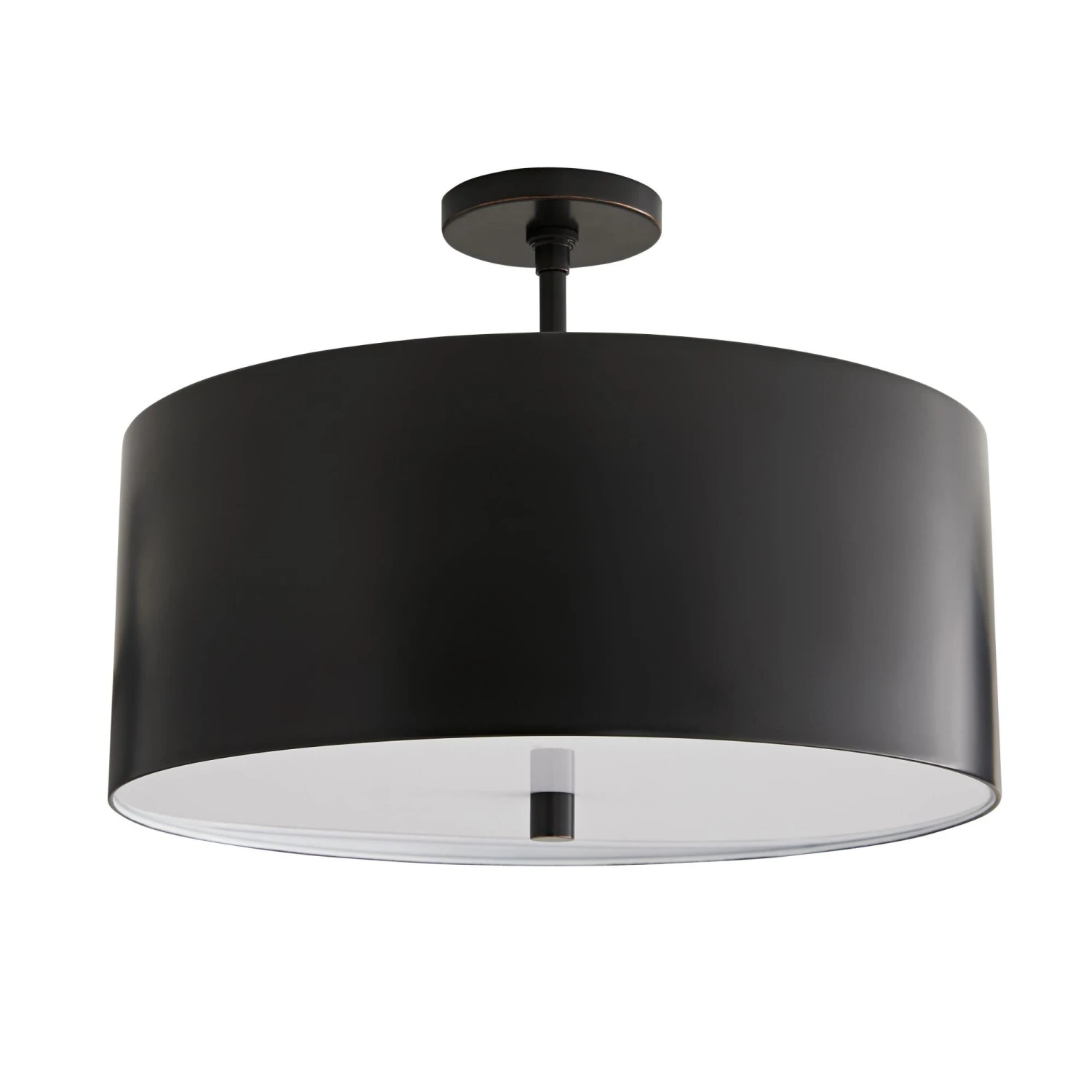 A straightforward examination of the basic principles of design takes place with this semi-flush pendant. A sleek steel shade frames this 3-light fixture which features an acrylic diffuser that is suspended from within.The balance and contrast of materials delivers a fundamental visual aesthetic that transcends time and style. Approved for use in covered outdoor areas.