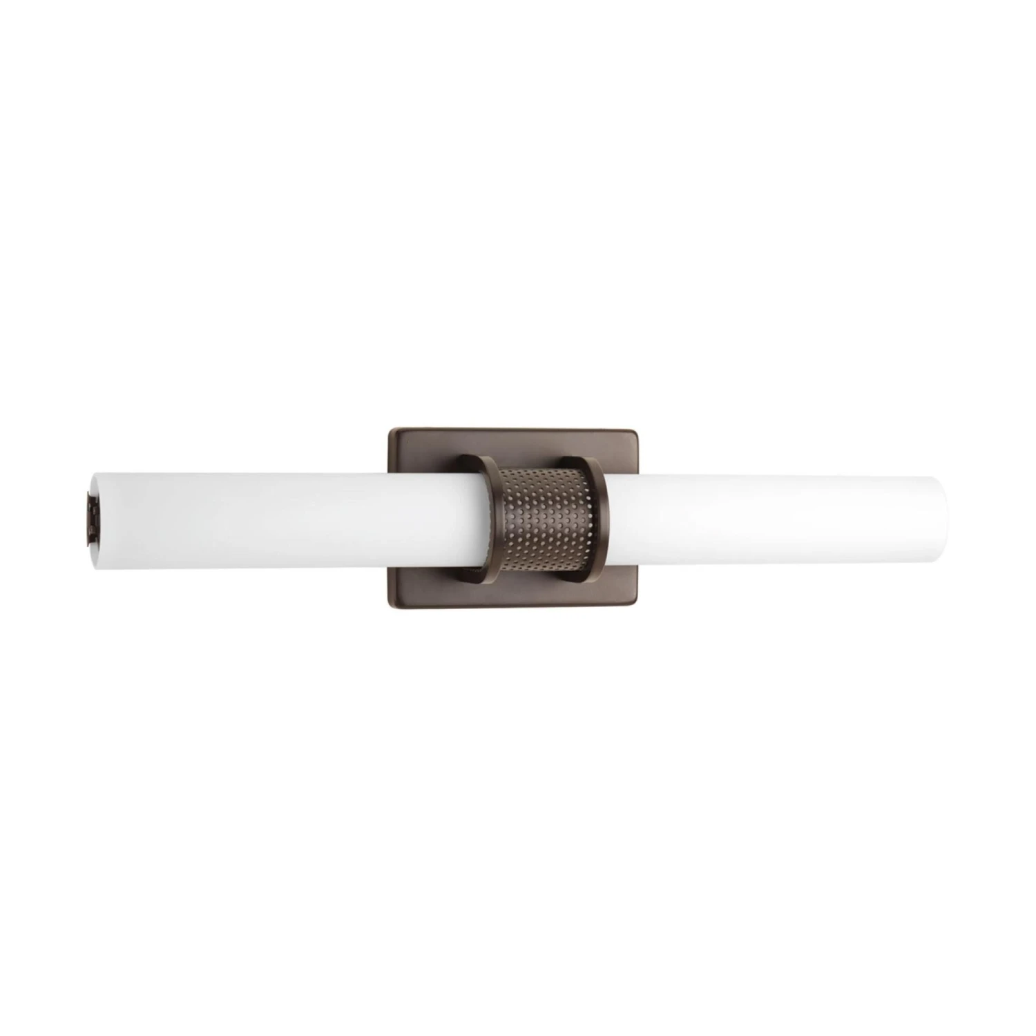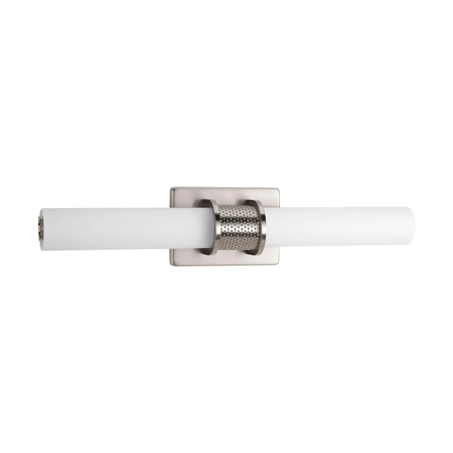 A tubular design pairs with a geometric back plate and mesh accents to create Truss a fixture than can be mounted horizontally or vertically. Circular etched opal glass contains an integrated LED source to provide a variety of energy and cost savings benefits for the homeowner. Modern style and continuous illumination are ideal for a variety of bath and vanity settings. LED source features 3000K and 90 CRI benefits, as well as a lifespan of more than 40,000 hours.Tubular design pairs with a geometric back plate and mesh accentsCan be mounted horizontally or verticallyCircular etched opal glass contains an integrated LED source
